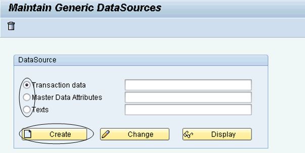 1) Select the type of DS u want to create based on the table u take, give the tech name and click on create icon.